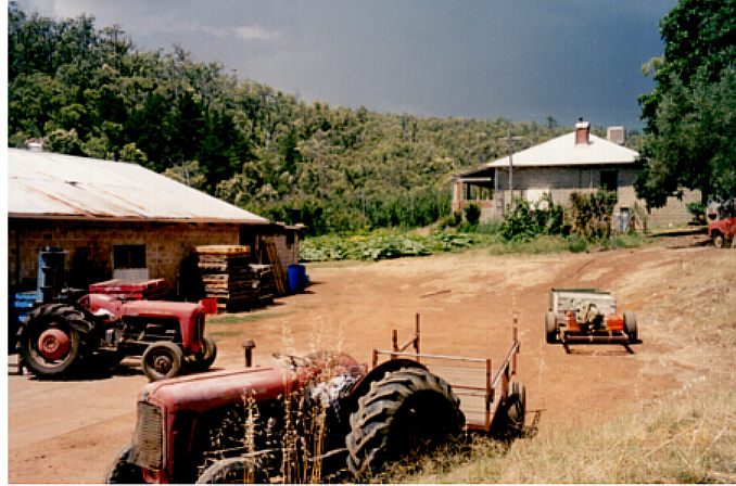 Later Alex purchased a pre-cut timber and asbestos house from Millers Timber and Trading Co. Margaret cooked in the open for six months while Alex and Fred built the house. It was a three bedroom house with a very large kitchen and front and back verandahs. They had a bricklayer build their chimney for the house and on the night that it was finished, a very bad wind storm came through the area and the chimney began to tilt. Unfortunately the chimney had to be pulled down brick by brick and rebuilt. It was winter before they were in their house.