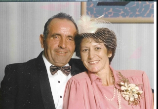 The photo opposite of Charlie and Joan is taken outside the local church after their wedding. It was 38 degrees on their wedding day in November 1958. The area in the background is quite bare and in the middle of the photo you can see the Davy house. |
