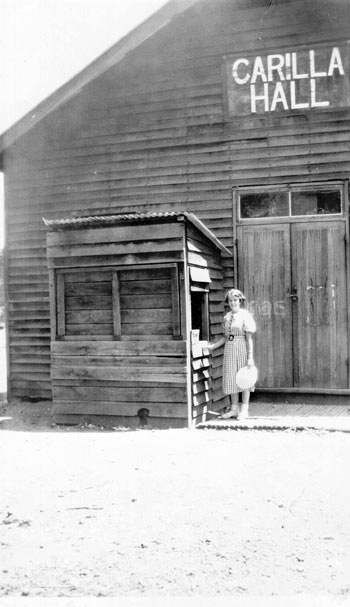 Money was scarce. Most of the orchard builders had taken up Government loans under the soldier settlement scheme the Act of 1918. They had to clear virgin bush and jarrah forest, build homes and plant their crops. Entertainment beyond the district was out of the question. Social life had its centre at the Carilla hall. “Practically everyone used to turn up for the dances. Babes in arms would stay in arms or in prams, scamps of boys and girls would occupy themselves usefully by sliding up and down the dance floor between dances on Hessian bags, serving the dual purpose of amusing themselves and keeping the jarrah floorboards slippery". The History of Kalamunda by