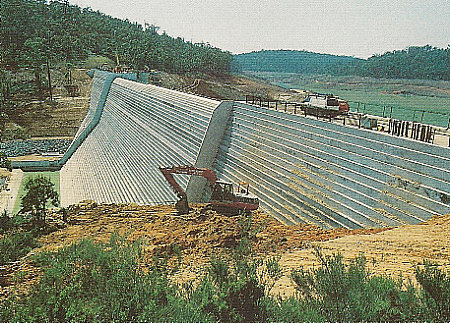 The New Victoria Dam was the first major new concrete dam constructed in Western Australia since the Caning Dam was completed in 1940. The dam has a catchment area of 37 square kilometres and a reservoir capacity of 9.5 million cubic metres.