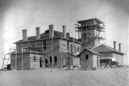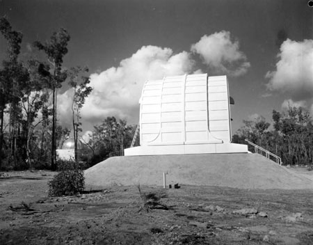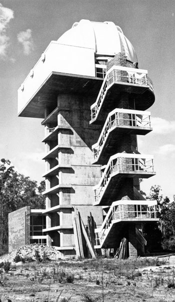 After the administration building was completed, work on the telescope domes commenced. All work performed was by hand, with no drilling or blasting performed on the laterite rock, so as to ensure the stability of the site for use by the sensitive telescopes and measuring equipment. The measures to ensure stability can be identified by the use of 50-year-old bricks, from the old W.A. Claremont Mental Asylum, being used for the piers of the Meridian Telescope.