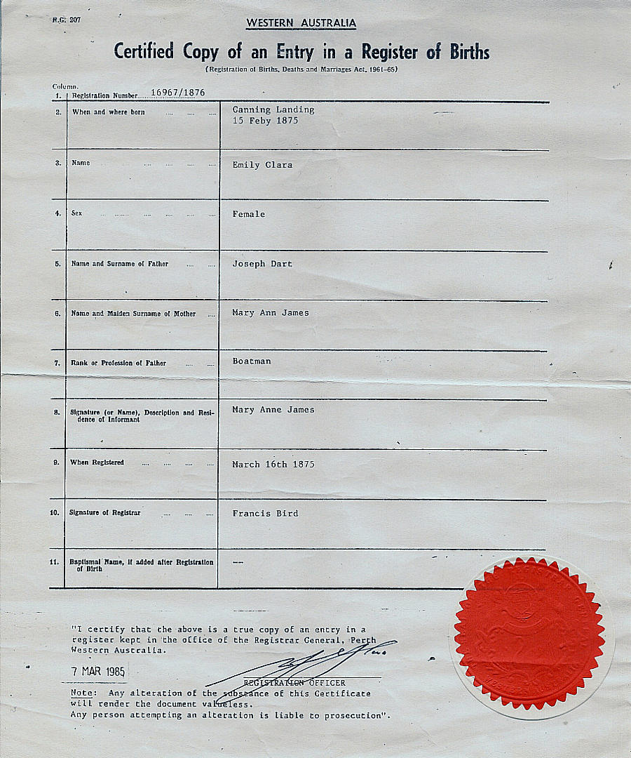 EMILY CLARA DART'S BIRTH CERTIFICATE #3