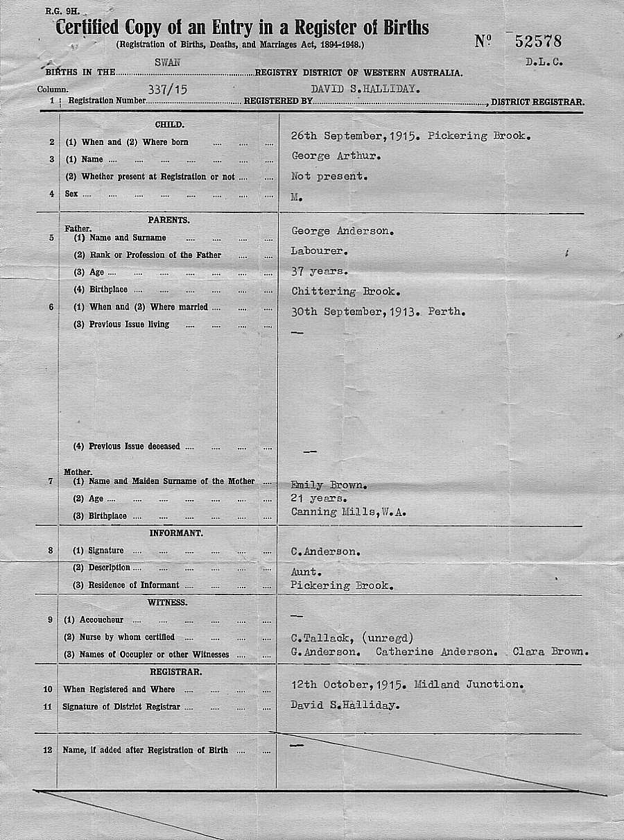 GEORGE ARTHUR ANDERSON 'S BIRTH CERTIFICATE #16 |
