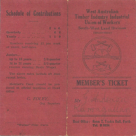 Archie's father was a wood cutter, as most fathers were at the time. Supplying the population of Perth with household wood, which they brought into the rail siding of Karragullen, with a horse and cart. |