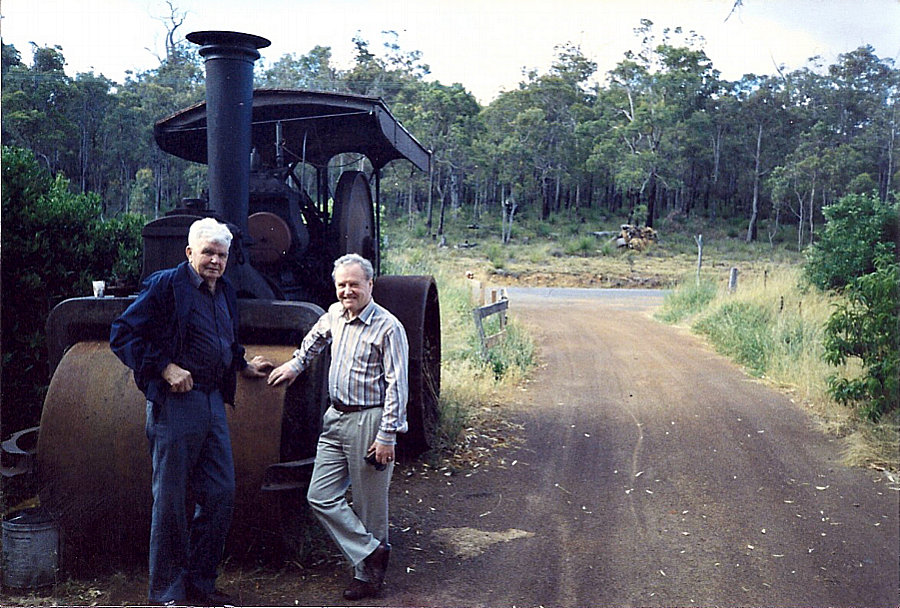 Archie also had a steam roller which was built in 1905 and came to Western Australia in 1906. Archie bought it from the Northam Shire in 1950. Over many years he worked on rebuilding the old Fowler steam powered roller. He won a contract with the Main Roads Department for work on the building of Brookton Highway. This involved work for both his steam traction engine and his steam roller. If the traction engine could not pull the stump out, then the road was re-aligned to go around it. Money was very tight during these development years, and a lot of bartering was done in lieu of payments. |