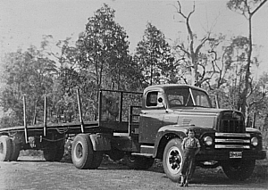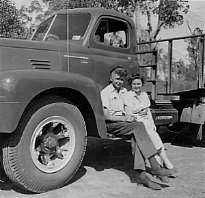 In 1950, Archie bought a brand new American Diamond "T" truck from Wesfarmers for two thousand two hundred pounds and twopence. It came in pieces, and was assembled in Wesfarmers James Street depot. This was the largest truck in the hills in those days. He bought the truck so that he could get into the timber carting business.