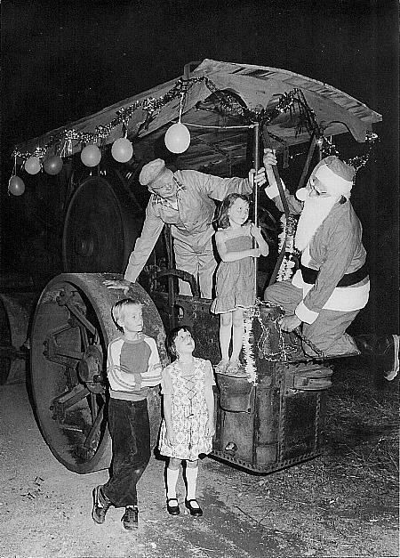 ARCHIE ANDERSON DRIVING FATHER CHRISTMAS TO THE CARMEL SCHOOL #75