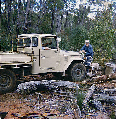 Archie's youngest daughter Lorraine met Kim Riches in 1968 at the Walliston Pony Club. They were both only 15 years old. They married four years later in 1972. Archie and Kim became good mates and worked together a lot. Lorraine and Kim have three children. Andrea Louise born 2nd June 1979, Matthew Steven born 30 December 1980 and David William born 28th November 1985. In 1970 Archie went with Kim Riches to West Toodyay in an old International Ute with a tank of water, some wood, waste rag and oil to fire up an old disbanded traction engine that had been sitting under a tree for 10 years or more. He oiled her and then fired her up and she came to life. Next day it was loaded on a Bell Bros low loader and brought back to Perth and eventually ended up at Channel TVW 7. In 1972 - 74 he carted logs for the Pickering Brook Sawmill. Ernie Bechelli was the faller for the mill. They had an old International 190 with a single axle jinker and worked an area from Munday's Gully through to out the back of Barton's Mill. Kim Riches would go out on the weekends and clear a landing site and pull logs down to it, for Archie to load the following week. Each day Archie would cart one load and sharpen the saws for the mill. Archie worked in the timber industry for many years and knew many people in all areas of the industry. He was well known and respected throughout. He had a very good understanding of the bush and how it all worked and he knew where every thing should be in it. As he got older he starting carting firewood and he always knew the best places to find the good timber for that purpose. Whilst out in the forest, 15 kilometres from home, cutting firewood with Ernie Mason in 1985, a serious accident occurred and Archie had a close brush with death. The chainsaw that he was using, clipped a protruding branch and jumped back at him. At full throttle it cut into his body passing within one centimetre of his heart and throat. He was cut from the neck to the breastbone. "There seemed to be a lot of blood but it didn't hurt and as I only had three logs to go I thought I'd just finish them before going home. But my mates would have nothing of that and one stripped off his singlet and pushed it into the hole." said Archie.