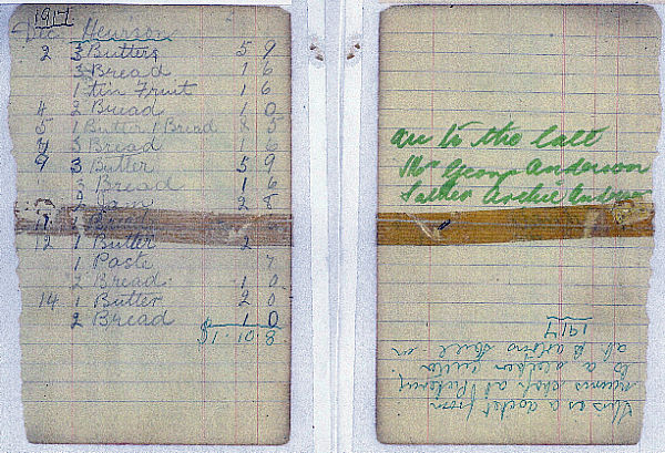 HAND WRITTEN DOCKET FROM HEWISON'S STORE AT BARTON'S MILL ON ACCOUNT OF GEORGE ANDERSON #27