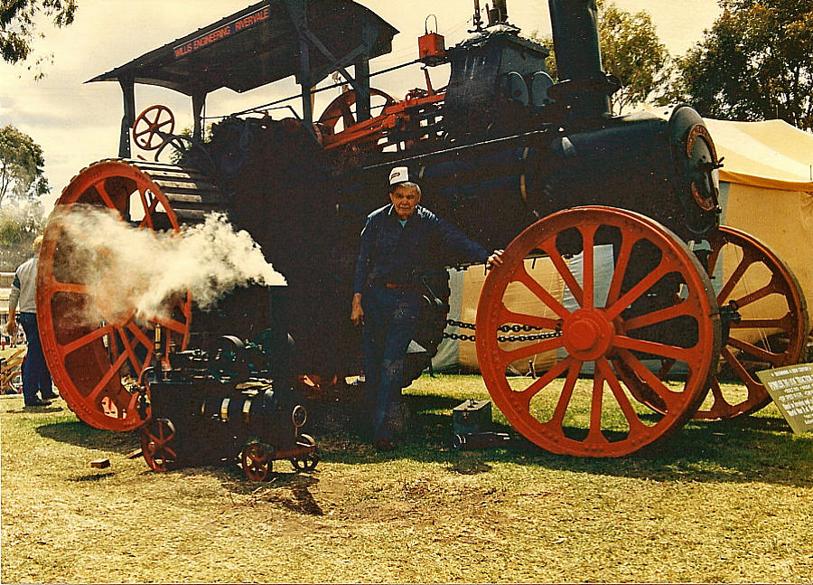 "ARCHIE" ANDERSON WITH HIS FULLY RESTORED TRACTION ENGINE AND HIS MODEL TRACTION ENGINE ON DISPLAY AT 1986 PERTH ROYAL SHOW #120