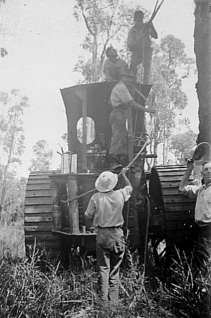 This method proved so successful that Archie managed to get some contracts when the Government Tree Pulling Program was implemented to help in the establishment of the soldiers settlement scheme. Leon Neaves, John Shaw and Joe Giglia worked with Archie, operating these machines. Many trees on the properties around Pickering Brook in the scheme, were tree pulled before being occupied by the settlers. The Sala Tenna children played a game of "how far can you go without touching the ground" by walking from one tree log to another on their property.