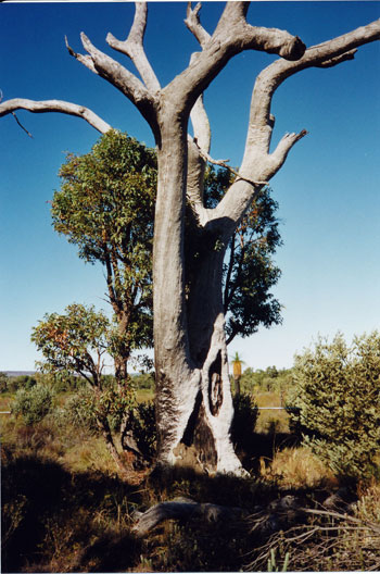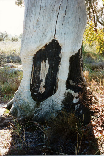 and talked with the Aborigines over a period of time whilst living there. Prior to the formation of the reserve, the area had been a place where many Aboriginal tracks crossed in the sandy foothills where travel was easier than in the hills. People mainly from the sub-groups of the Beeloo people, would congregate socially. A “scarred tree” which has now been fenced off in Hartfield Park, is thought to have been used to produce bark which would have been used to create shield and coolamons (dish-shaped utensils used to carry food or even a baby). |