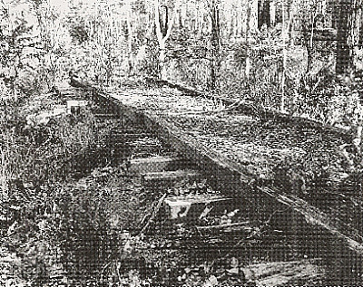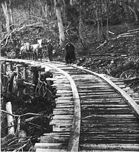 TIMBER TRAMWAY, EMU BAY, TASMANIA. MASON & BIRD TRAMWAY WOULD HAVE |