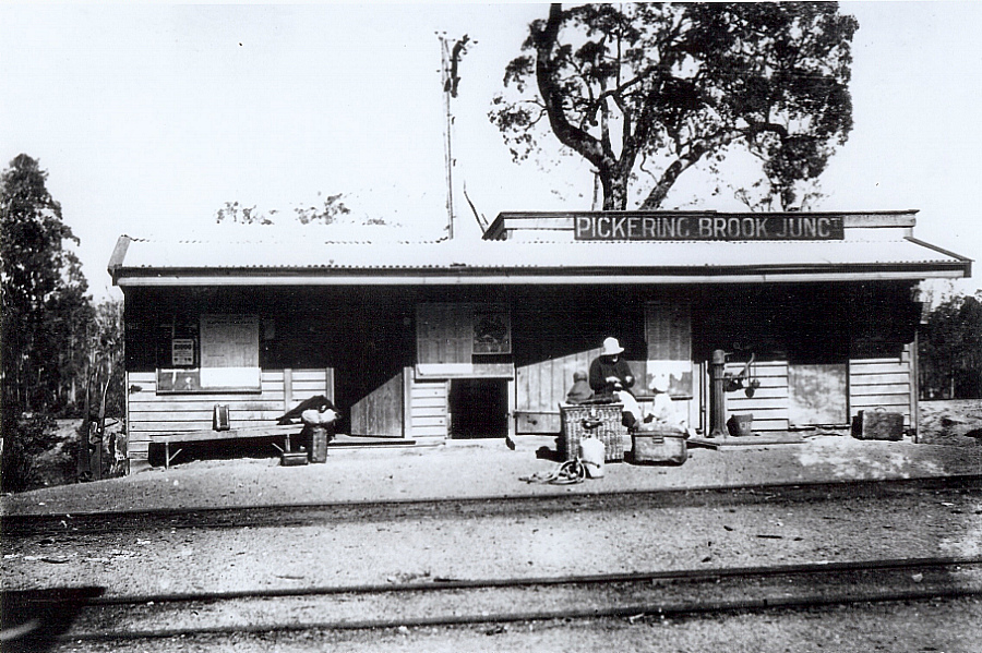 VERY RARE PHOTO OF PICKERING BROOK JUNCTION AND TERMINUS SITE WHICH WAS THE END OF THE LINE AFTER THE GOVERNMENT TOOK OVER THE LINE IN JULY 1903.