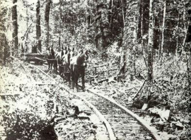 TIMBER BRIDGE & TRAMWAY FOR TRANSPORTING LOGS HAULED BY HORSES. |