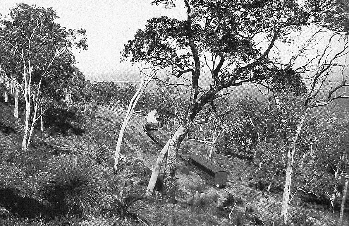 At the time of construction it was the only section of railway in Western Australia to have had a zig zag formation, the line was so steep (1 in 30 grade) that the engine would alternate between pushing and pulling the load. Three trains, each way per day traversed the full length of the Upper Darling Railway, and at peak periods an additional “special” was run to cope with the heavy loadings of sawn timber and firewood produced in the area.
