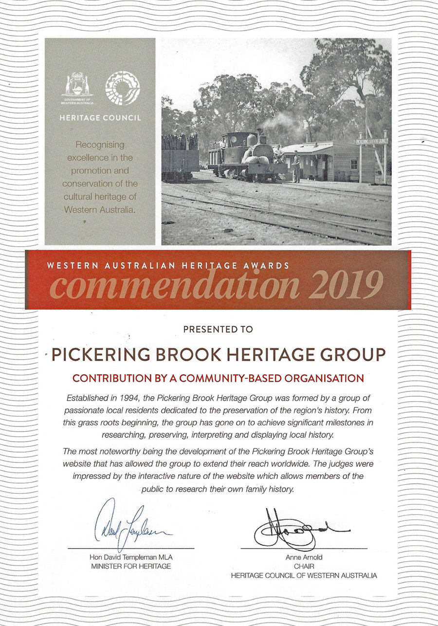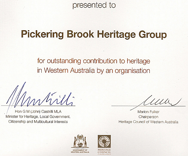 Copyright : Pickering Brook Heritage Group 2008-2019